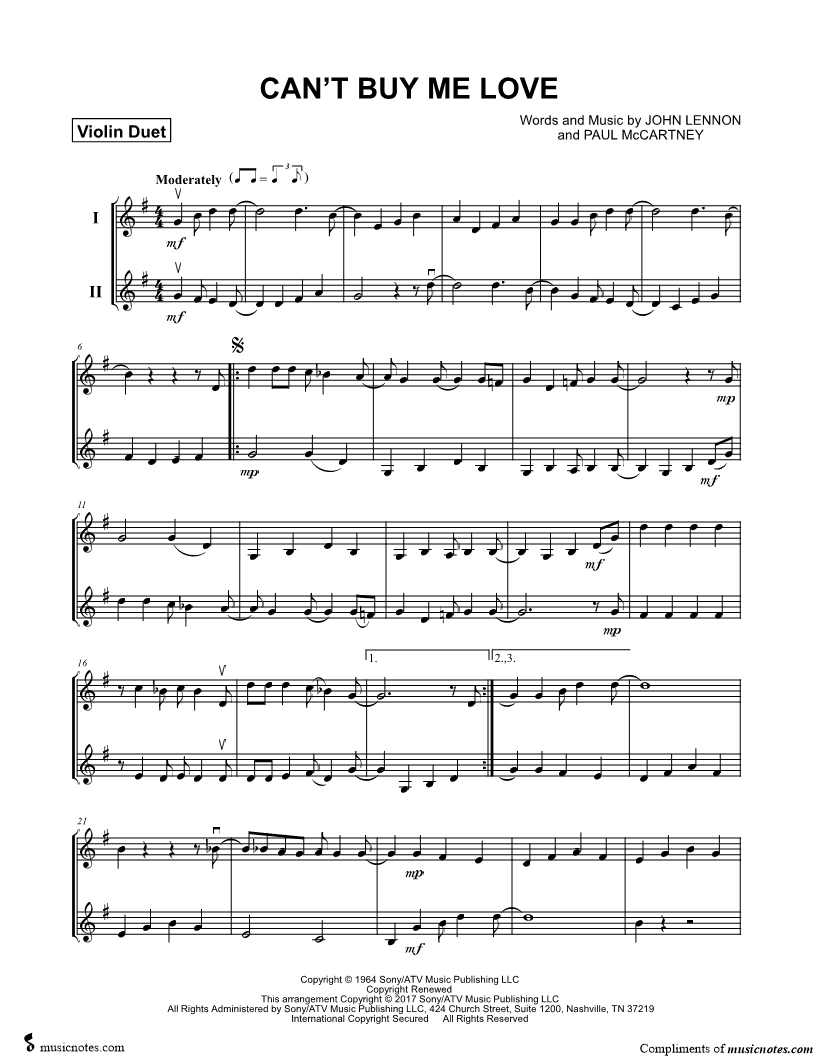 Can't Buy Me Love - Violin Duet |