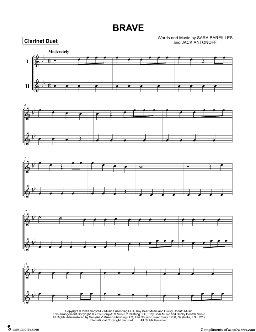 Brave - Clarinet Duet |