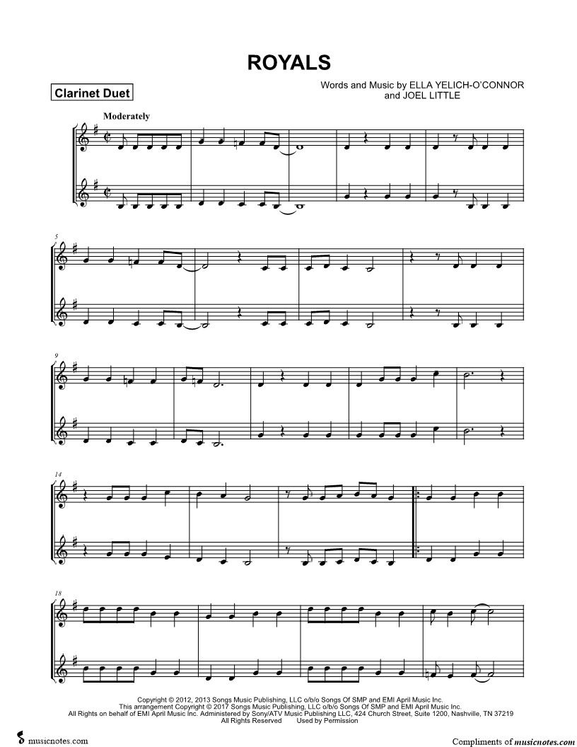 Clarinet 1, range: B3-G5 Clarinet 2, range: B3-C5 | |