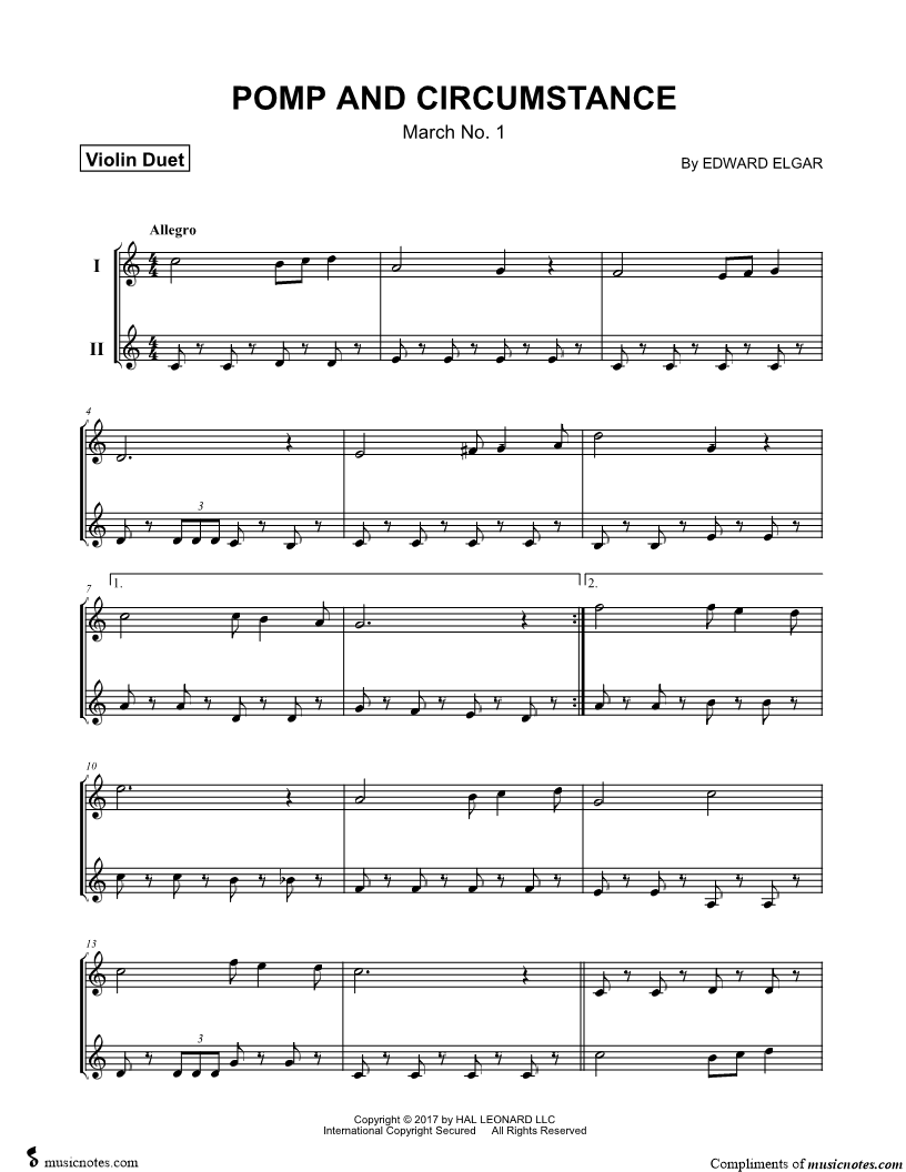 Pomp and Circumstance - Violin Duet |
