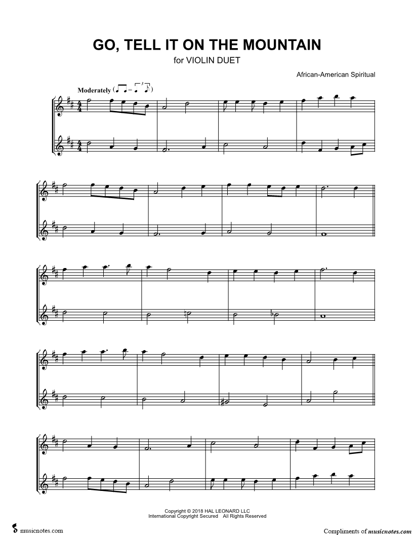 Go, Tell It on the Mountain - Violin Duet |
