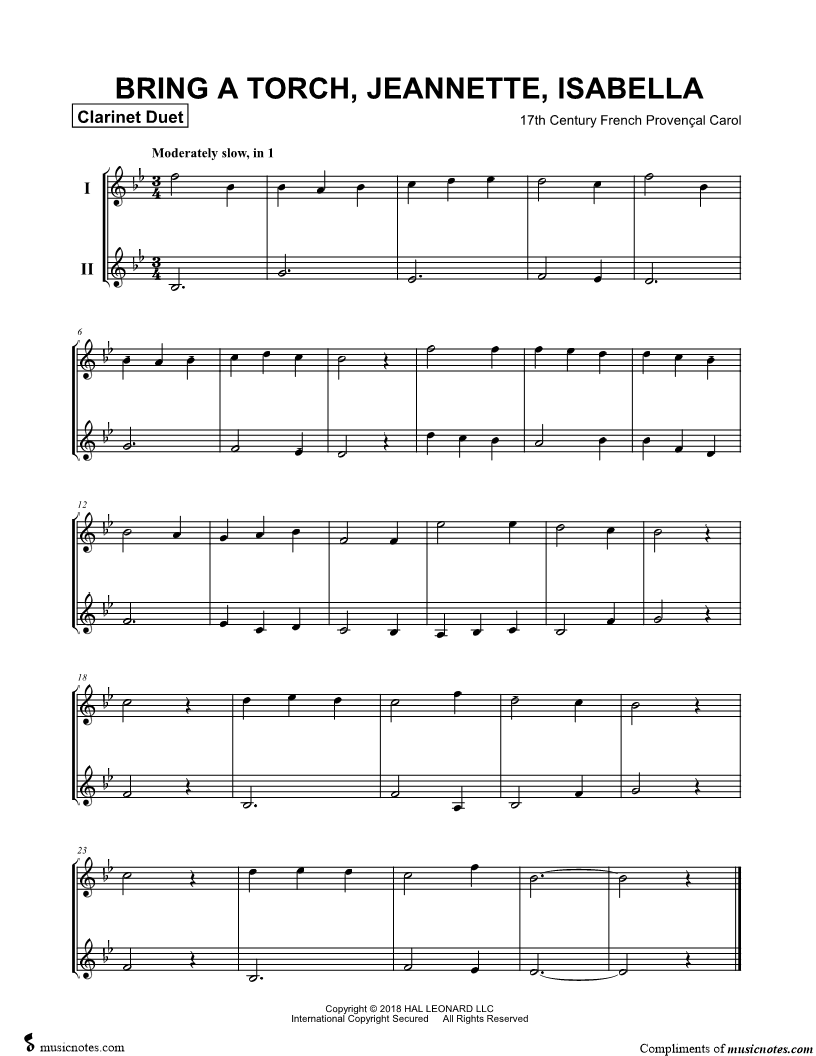 Bring a Torch, Jeannette, Isabella - Clarinet Duet |