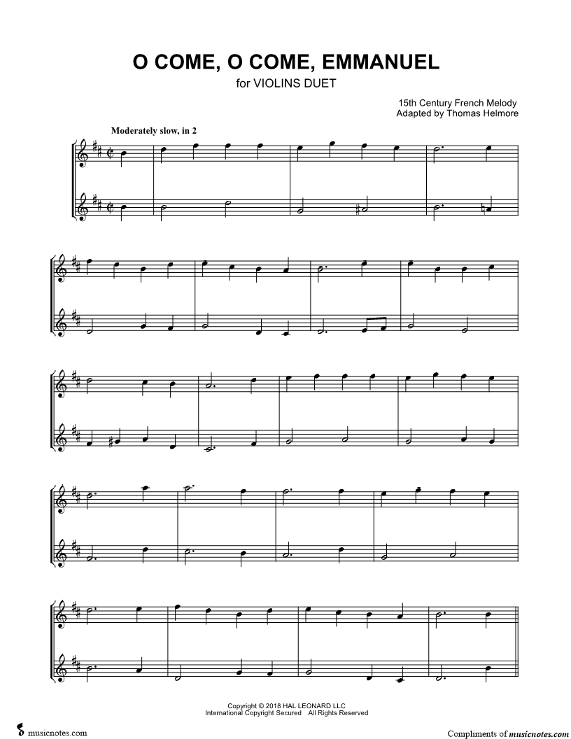 O Come, O Come, Emmanuel - Violin Duet |