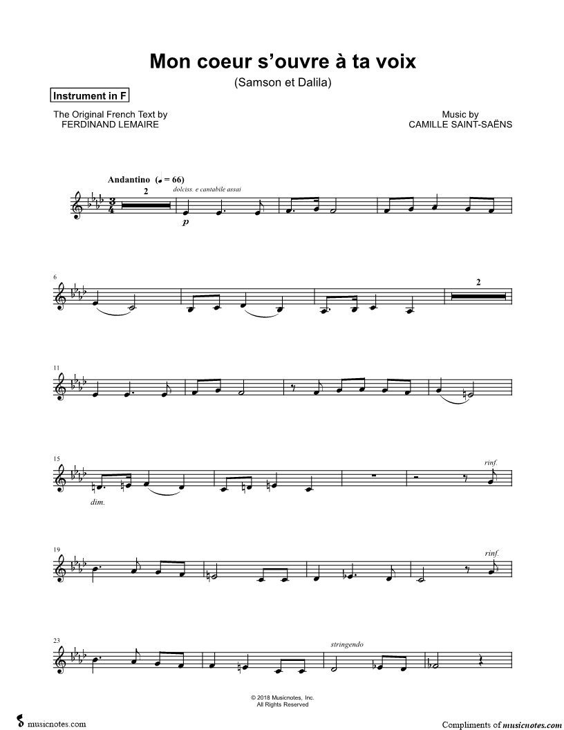 Mon coeur s'ouvre à ta voix - F Instrument |