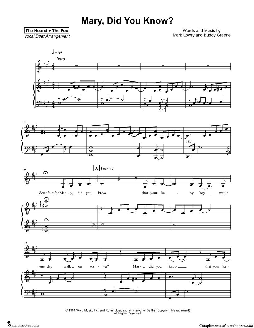 Mary, Did You Know? - Vocal Duet |