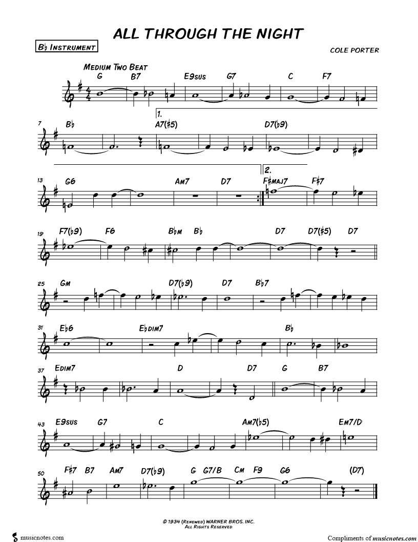 All Through the Night - Bb Instrument |