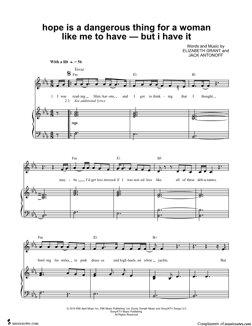 hope is a dangerous thing for a woman like me to have - but i have it |