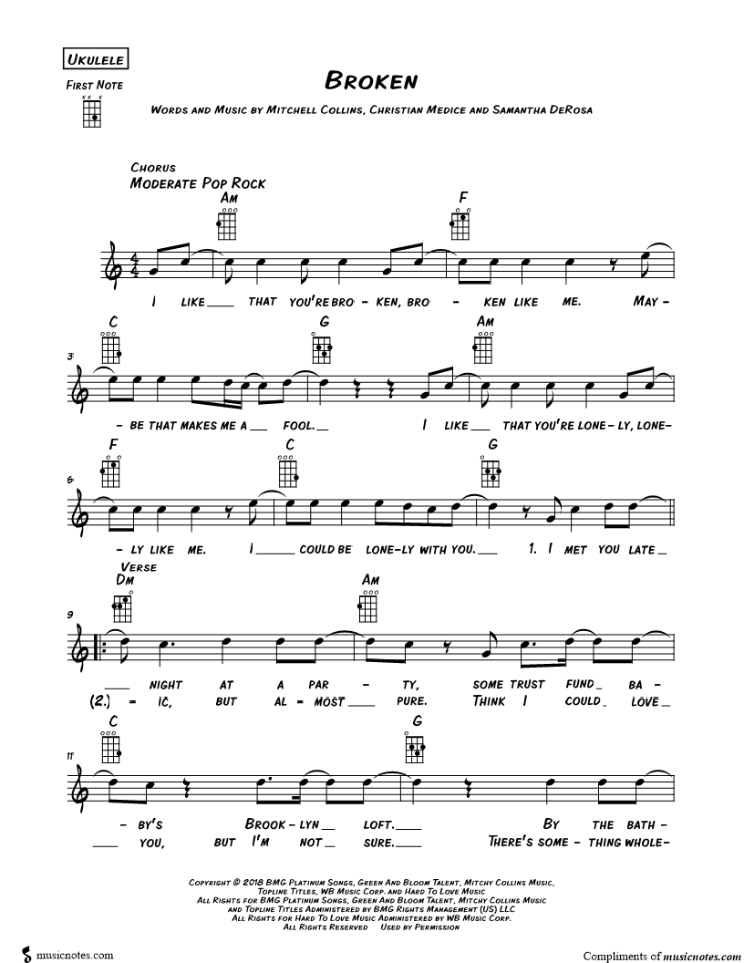 Ukulele/Vocal/Chords Leadsheet |
