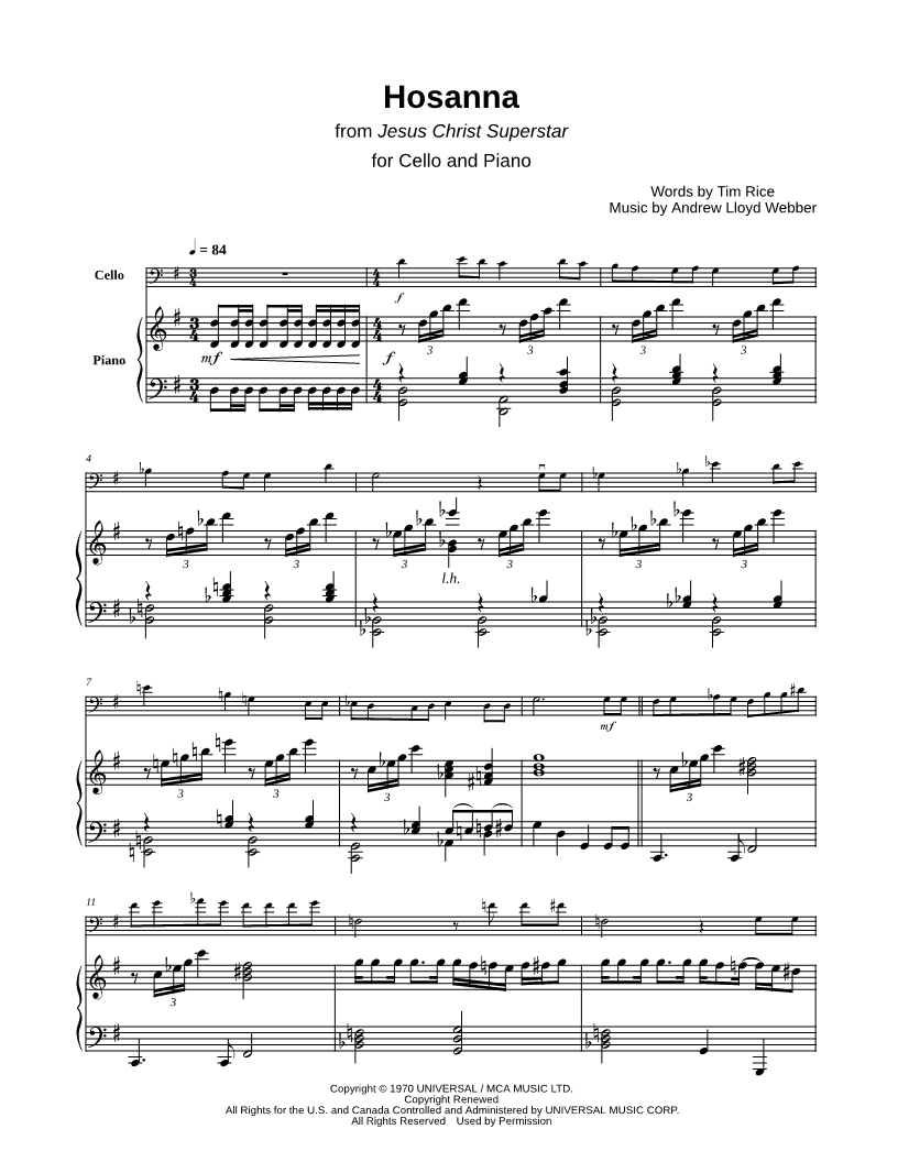 Hosanna - Cello & Piano |
