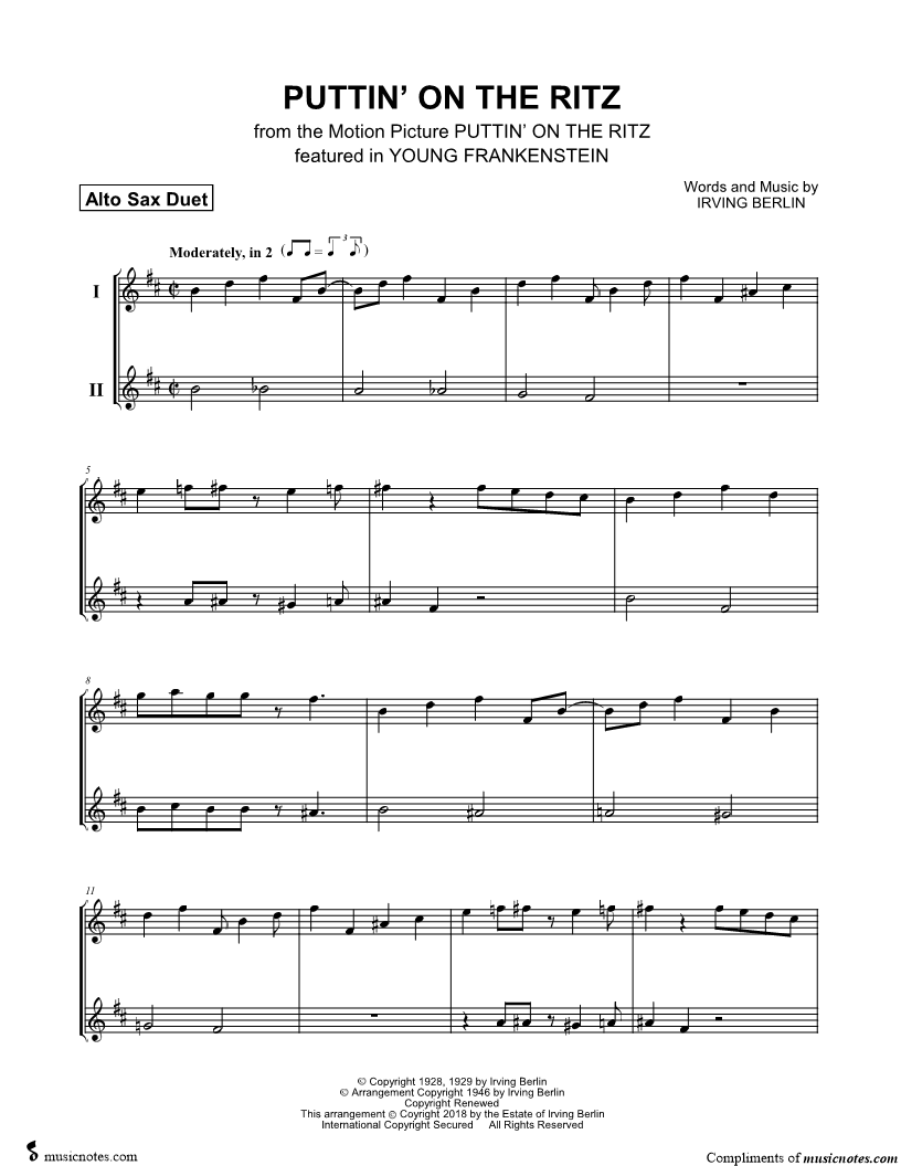 Puttin' on the Ritz - Alto Saxophone Duet |