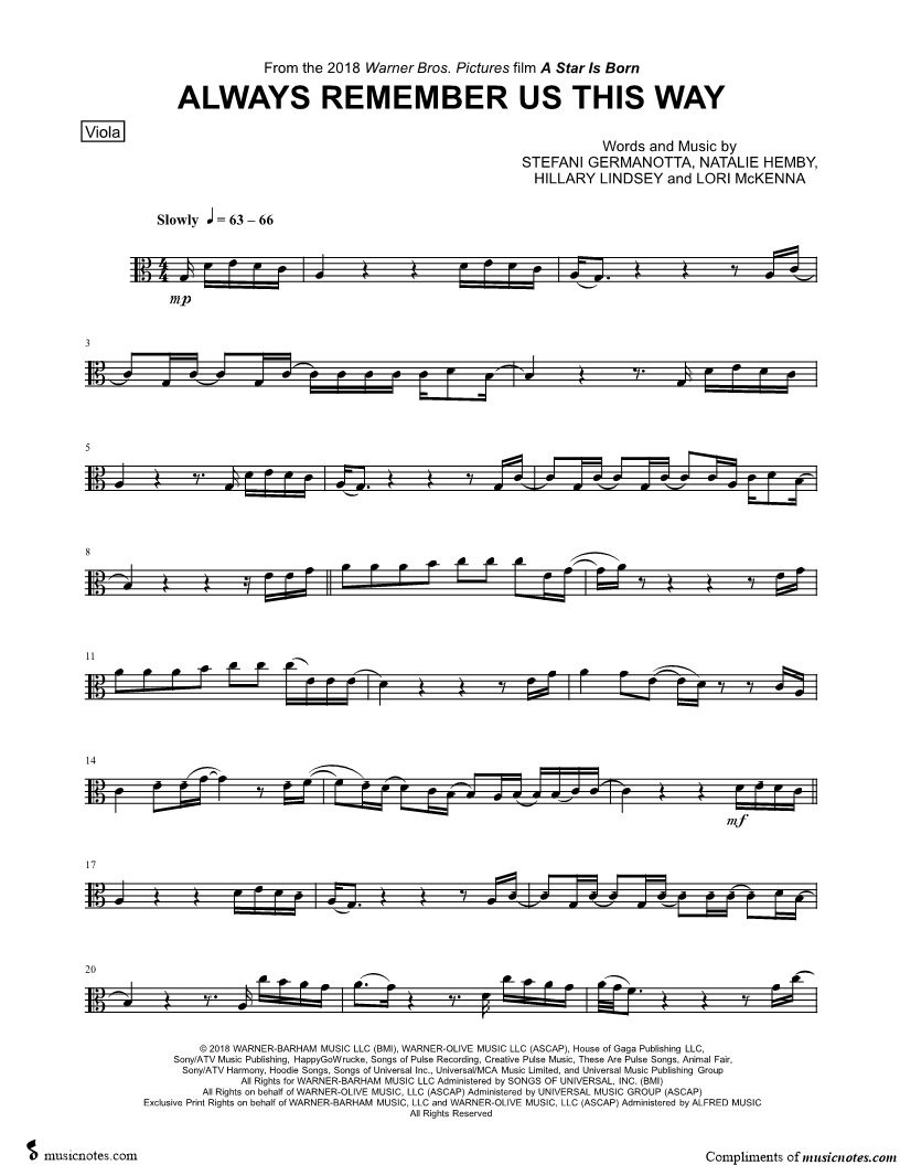 Always Remember Us This Way - Viola |