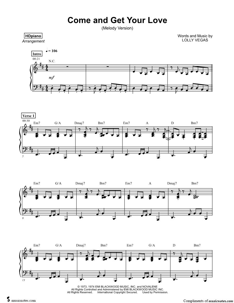 Come and Get Your Love [melody version] |