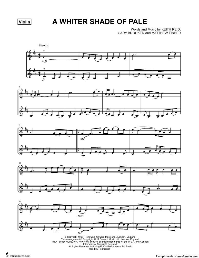 Violin 1, range: A3-B5 Violin 2, range: A3-F#5 | |
