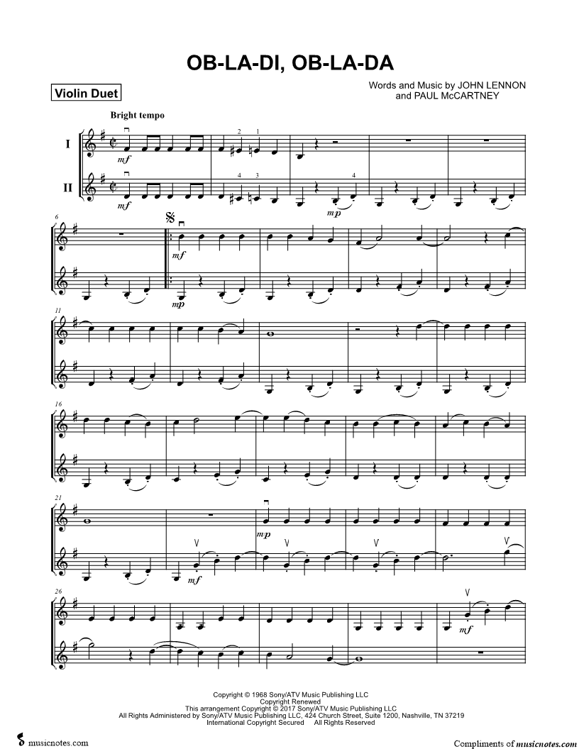 Ob-La-Di, Ob-La-Da - Violin Duet |