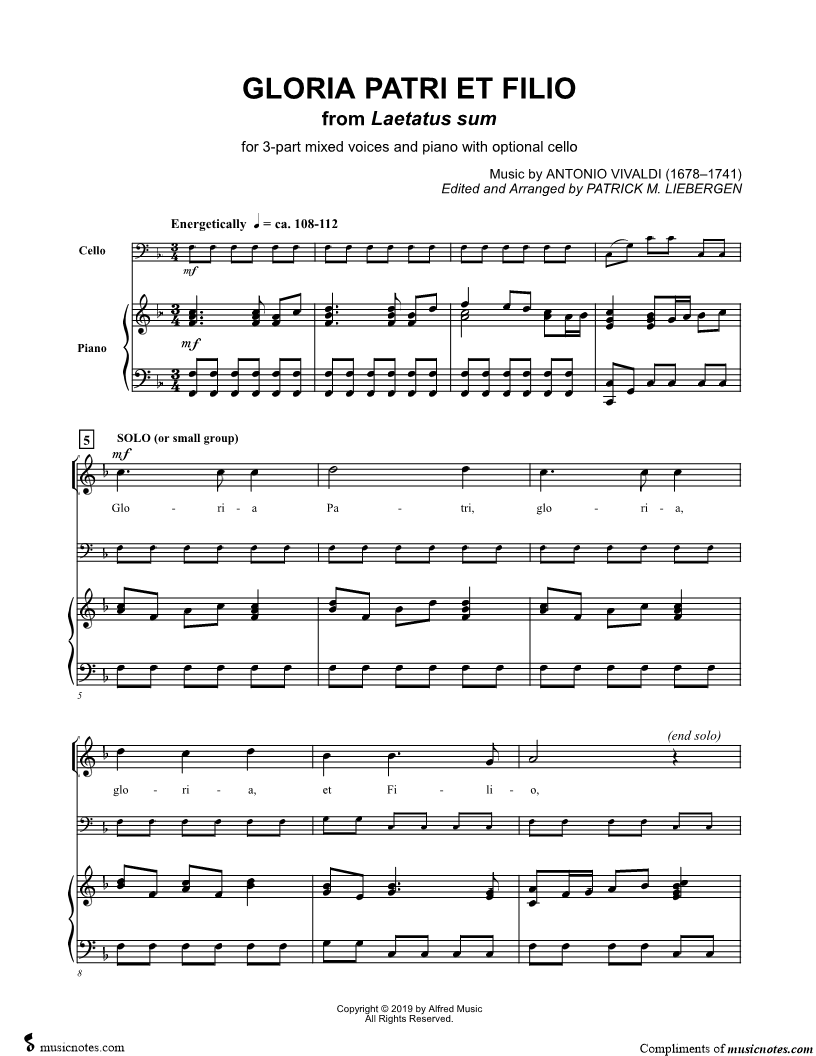 3-Part Choir or Mixed Choir Piano Accompaniment Cello, range: C2-C4 | |