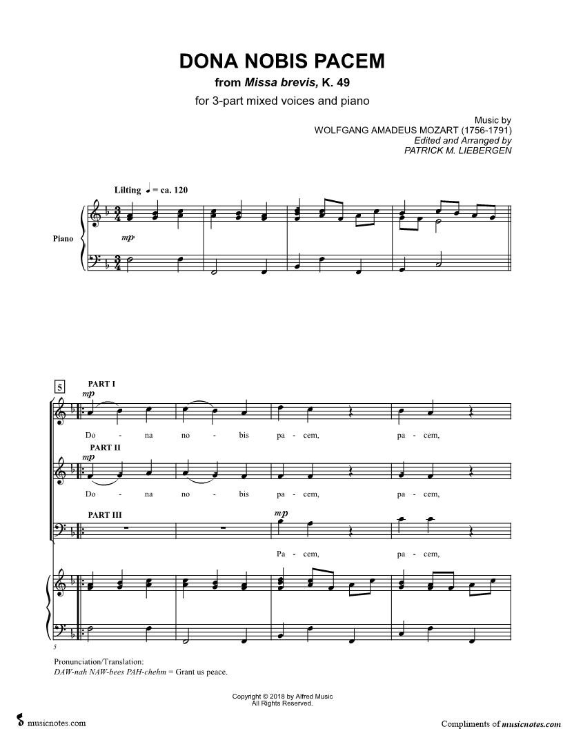 Dona Nobis Pacem (from Missa brevis, K. 49) |