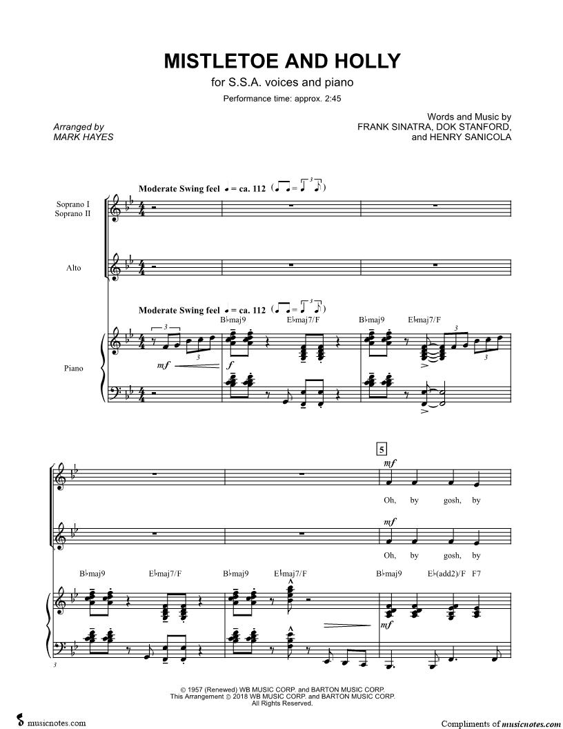 Oh, by gosh, by golly, it's time for mistletoe and holly, |