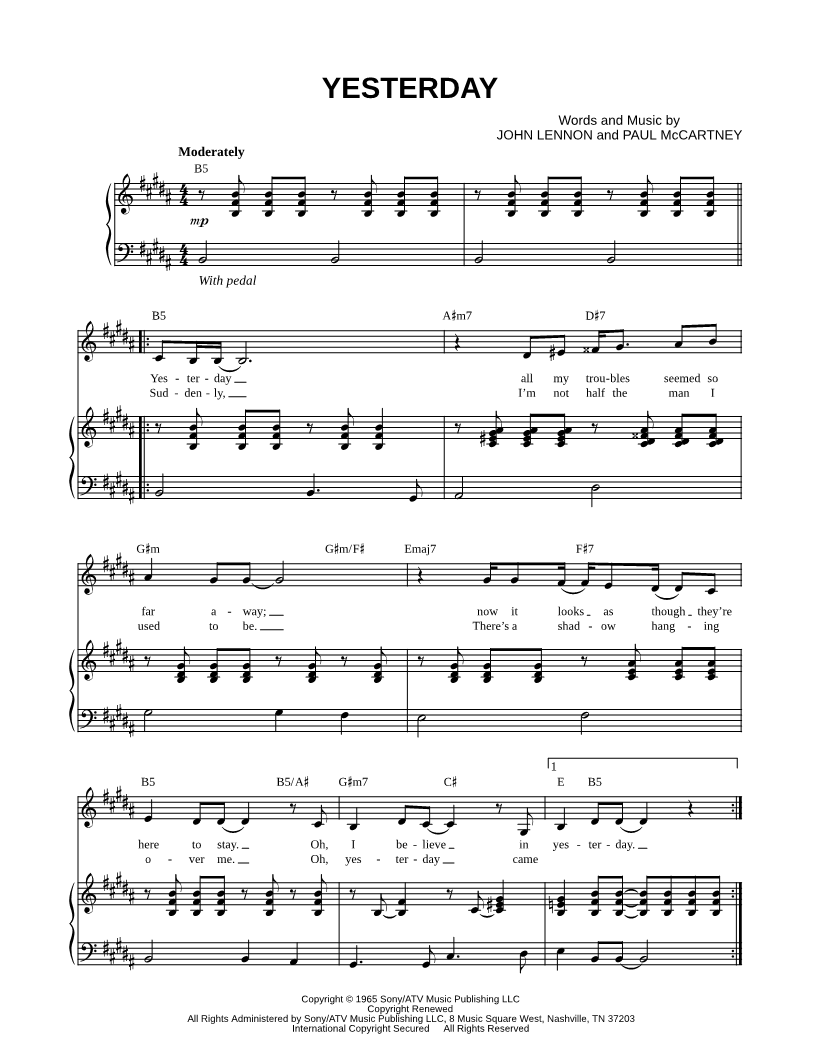 Yesterday all my troubles seemed so far away; now it looks as though they're here to stay. |