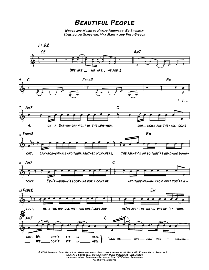 Leadsheets typically only contain the lyrics, chord symbols and melody line of a song and are rarely more than one page in length. Musicians will often use these skeletons to improvise their own arrangements. Leadsheets often do not contain complete lyrics to the song.