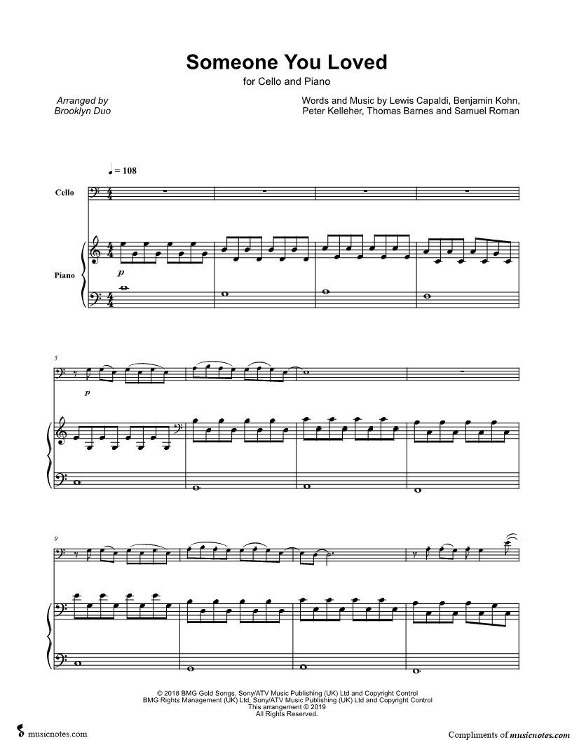 Cello, range: F2-C7 Piano | |