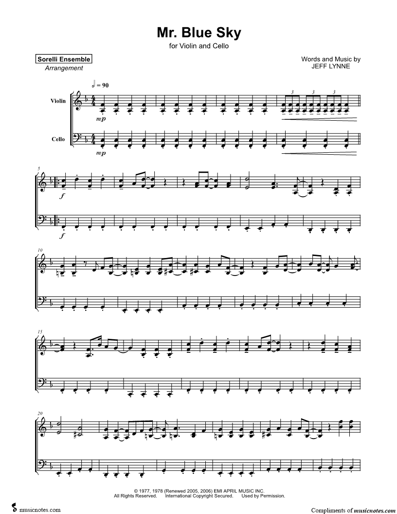Mr. Blue Sky - Violin & Cello |