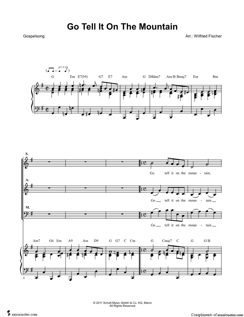 Go tell it on the mountain, over the hills and ev'rywhere. |