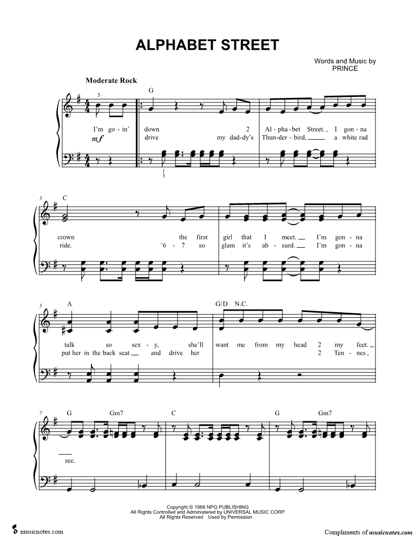 I'm goin' down 2 Alphabet Street. |