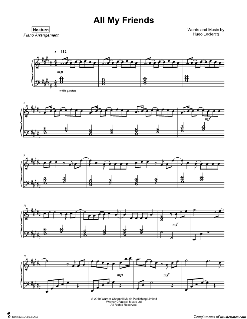 Musicnotes sells a wide variety of digital sheet music products including Singer Pros, Beginner Notes, Choral music, Piano Solos, Lead Sheets, Piano/Vocal/Guitar, Solo and Accompaniment, and fretted instrument tablature.