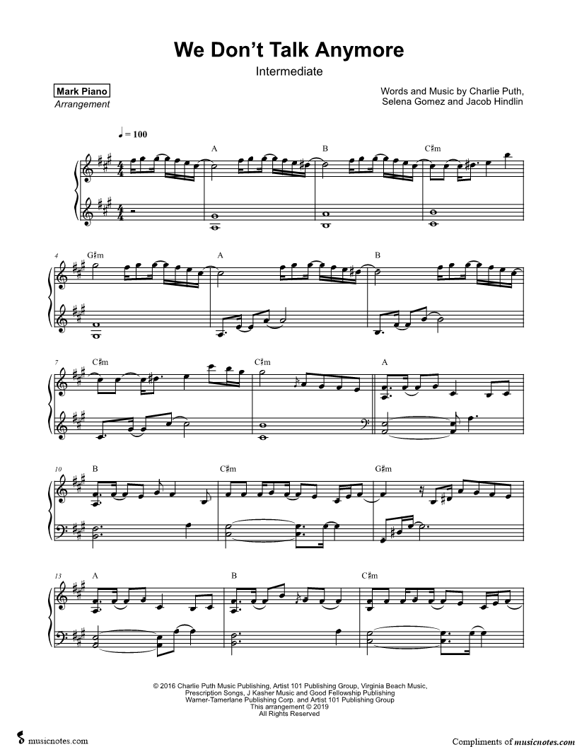 We Don't Talk Anymore [intermediate] |