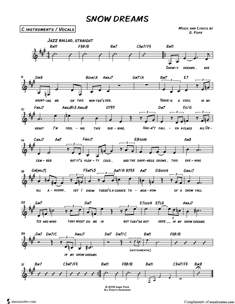 Leadsheets typically only contain the lyrics, chord symbols and melody line of a song and are rarely more than one page in length. Musicians will often use these skeletons to improvise their own arrangements. Leadsheets often do not contain complete lyrics to the song.