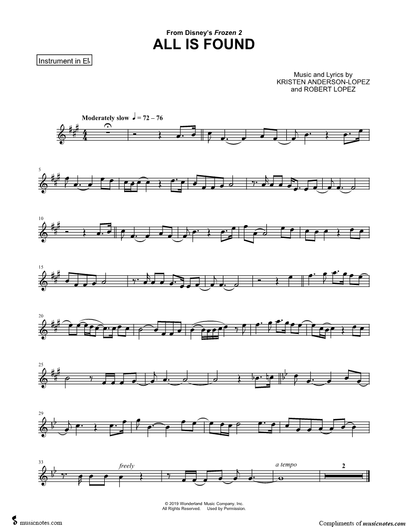 All Is Found - Eb Instrument & Piano (from Disney's Frozen 2)