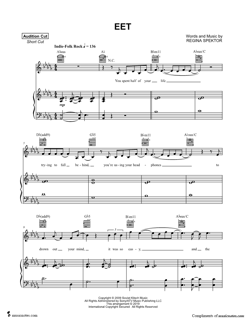 Musicnotes sells a wide variety of digital sheet music products including Singer Pros, Beginner Notes, Choral music, Piano Solos, Lead Sheets, Piano/Vocal/Guitar, Solo and Accompaniment, and fretted instrument tablature.