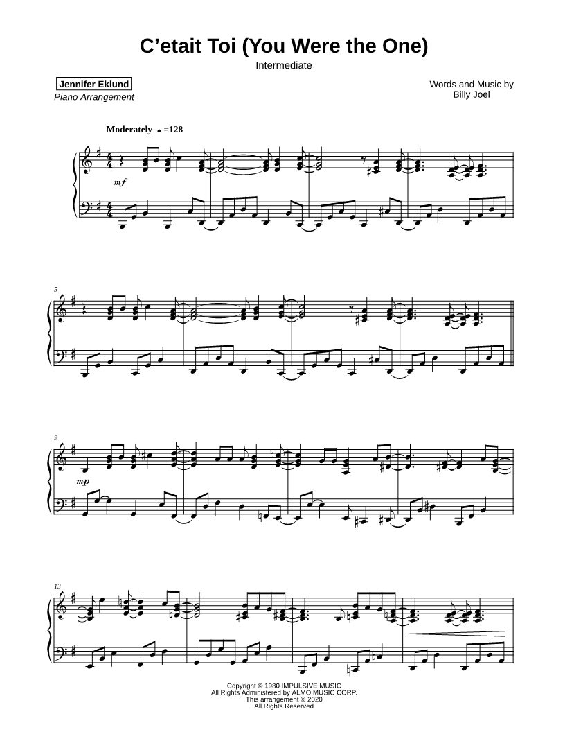 C'etait Toi (You Were the One) [intermediate] |