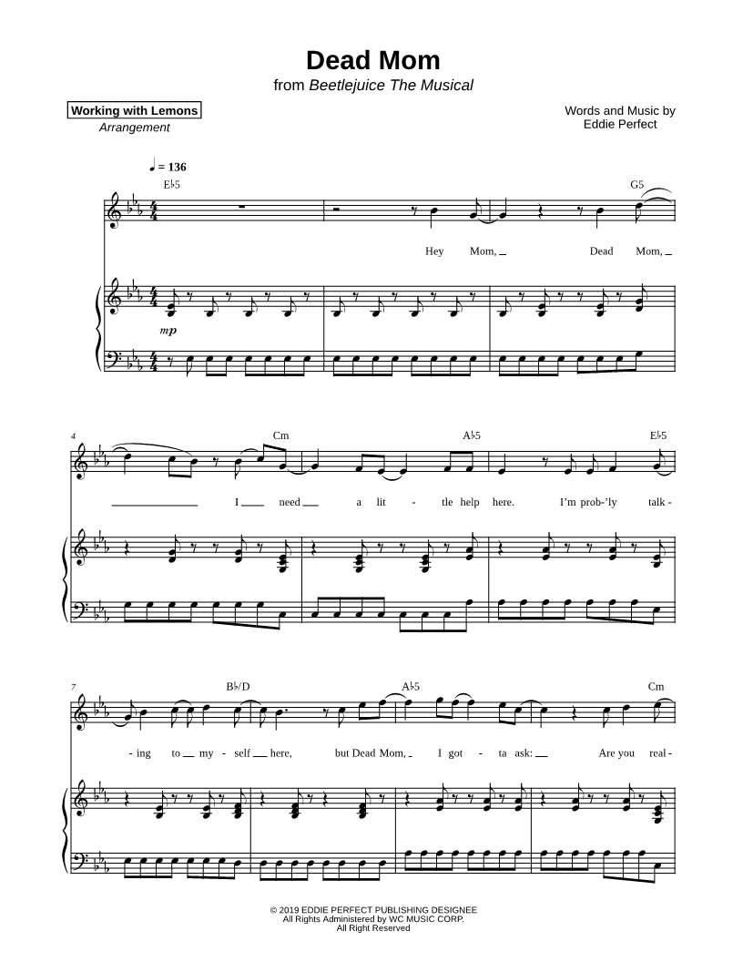 Many of the arrangements on Musicnotes have transpositions available, typically in C Major, as well as 3 sharps and 3 flats. If you do not see your desired key, you can request a transposition by reaching out to Customer Support.