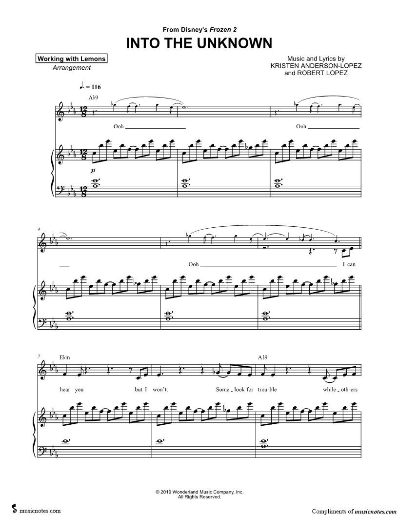 Many of the arrangements on Musicnotes have transpositions available, typically in C Major, as well as 3 sharps and 3 flats. If you do not see your desired key, you can request a transposition by reaching out to Customer Support.