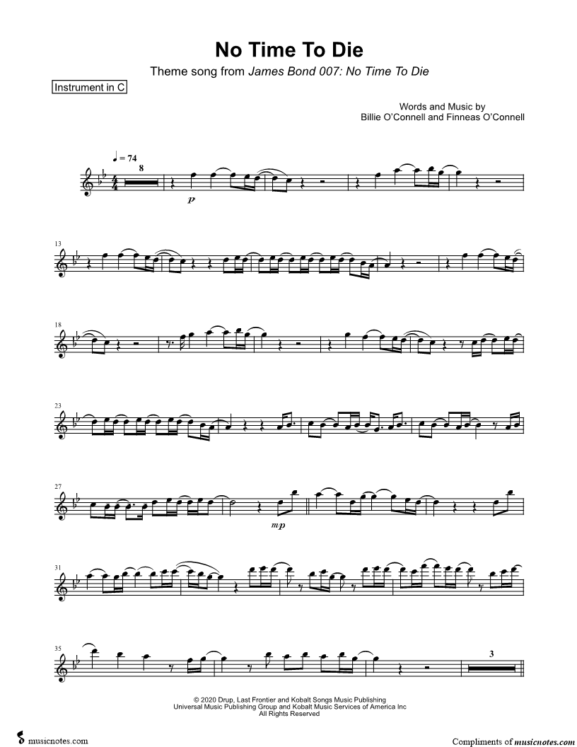 Collection: No Time to Die - C Instrument & Piano (Theme song from James Bond 007: No Time to Die)