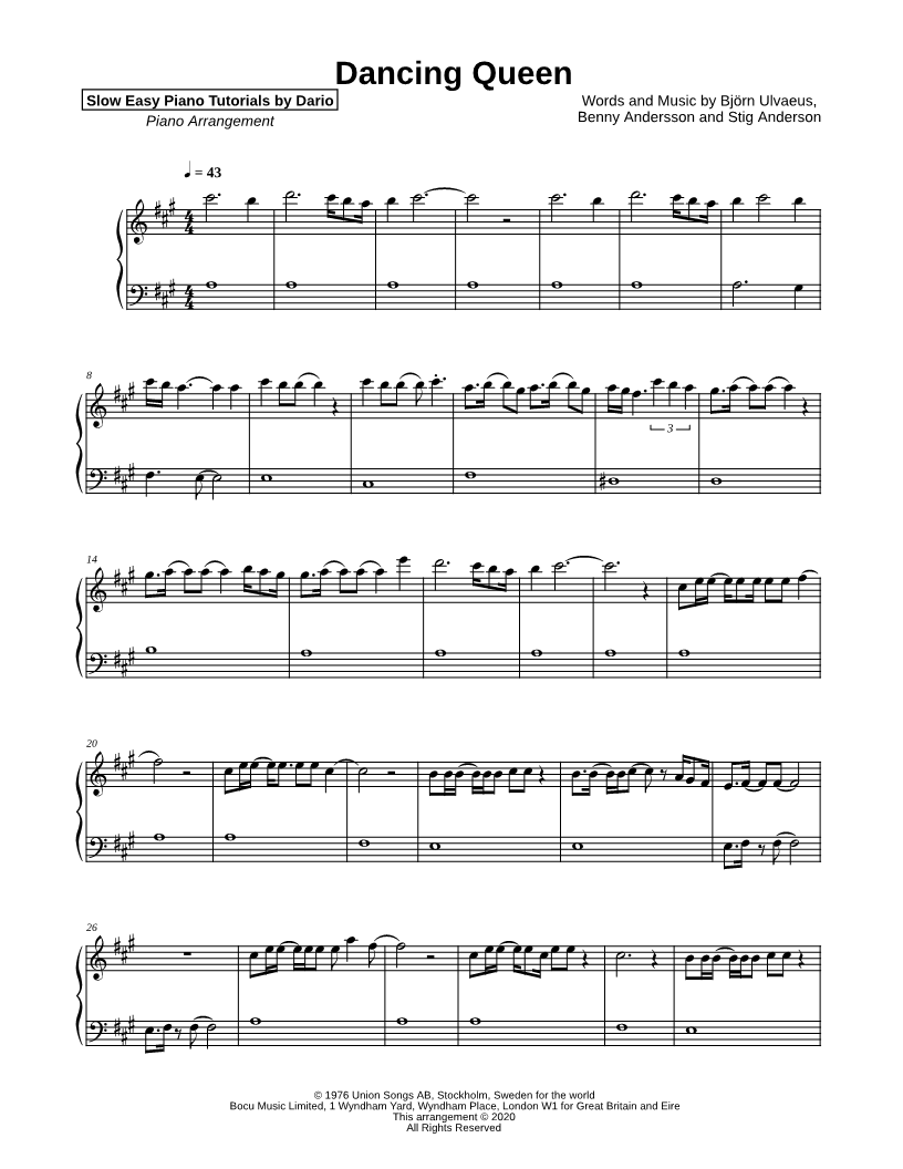 Dancing Queen [Slow Easy Piano Tutorial] |