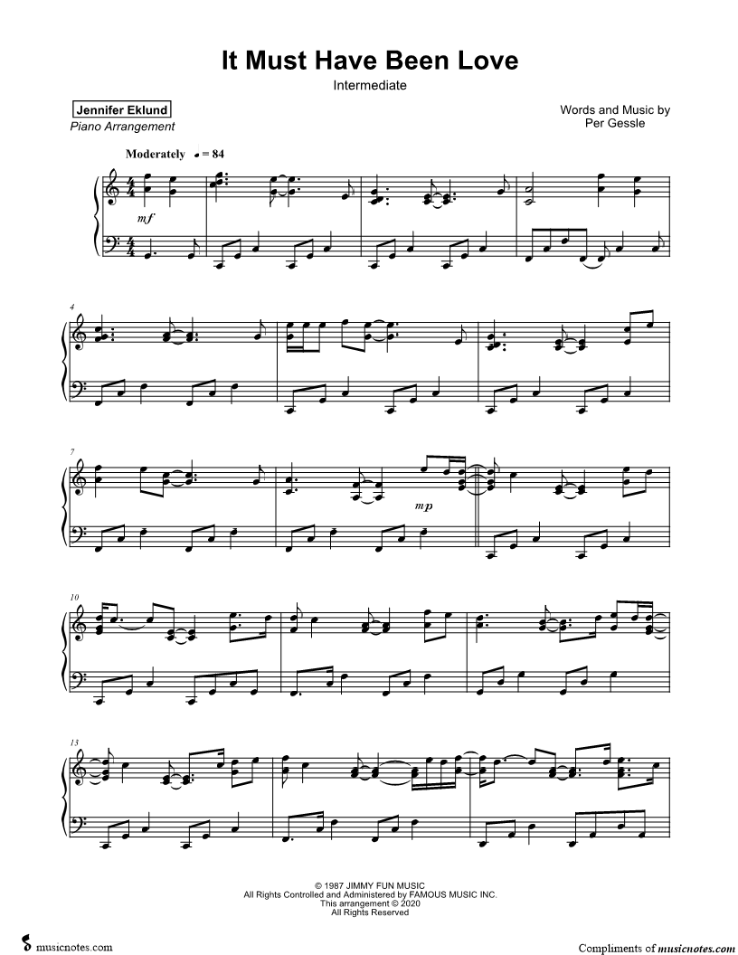 It Must Have Been Love [intermediate] |