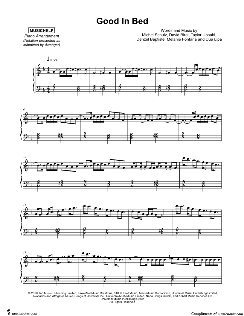 Many of the arrangements on Musicnotes have transpositions available, typically in C Major, as well as 3 sharps and 3 flats. If you do not see your desired key, you can request a transposition by reaching out to Customer Support.