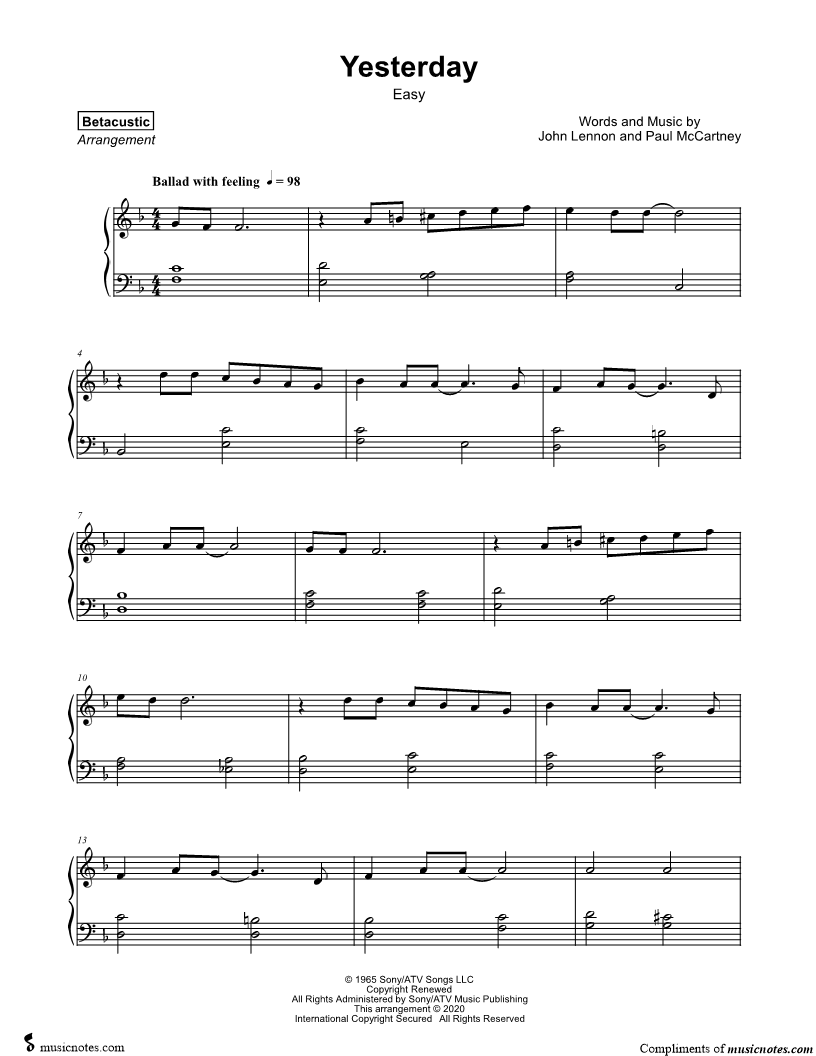 Yesterday [easy] |