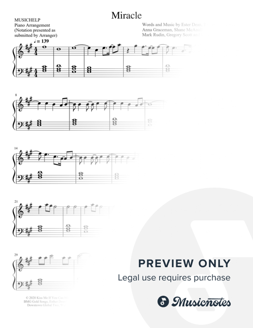 Many of the arrangements on Musicnotes have transpositions available, typically in C Major, as well as 3 sharps and 3 flats. If you do not see your desired key, you can request a transposition by reaching out to Customer Support.