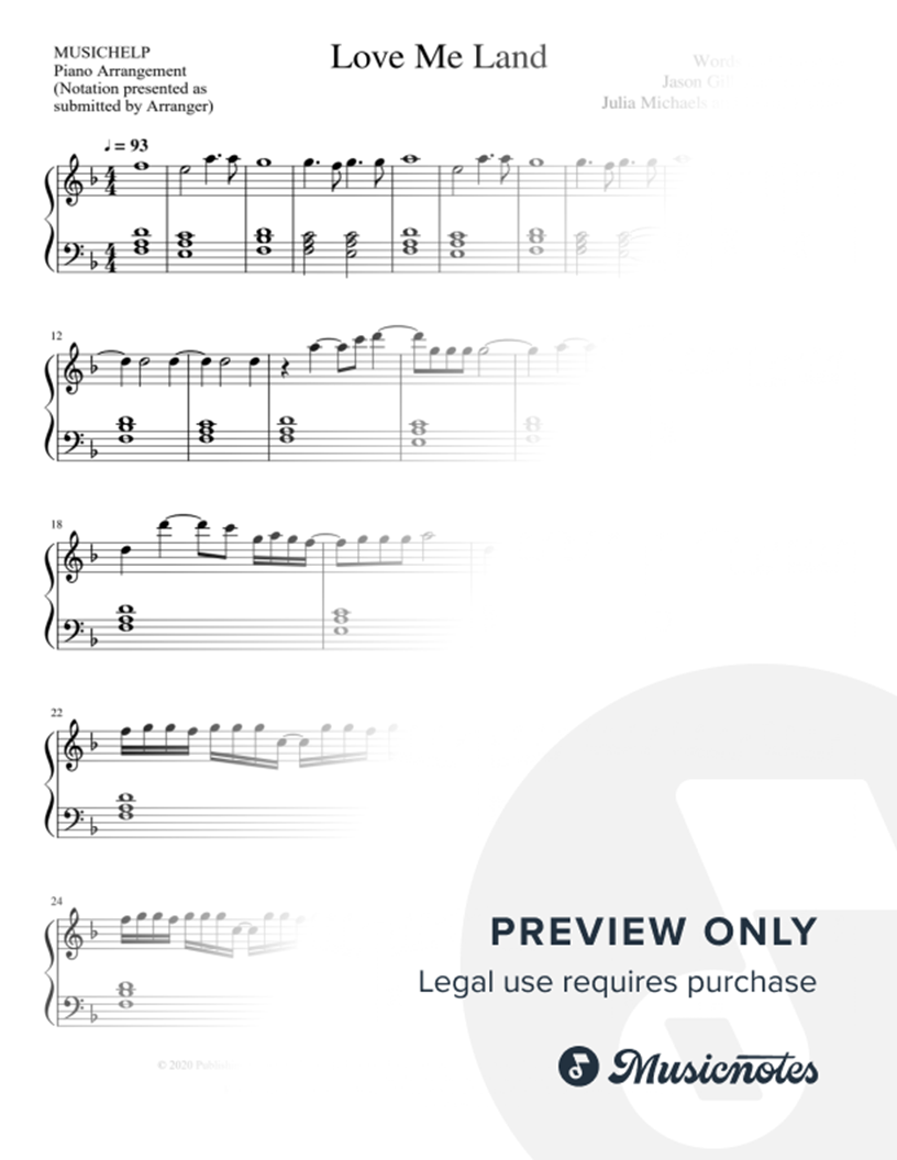 Musicnotes sells a wide variety of digital sheet music products including Singer Pros, Beginner Notes, Choral music, Piano Solos, Lead Sheets, Piano/Vocal/Guitar, Solo and Accompaniment, and fretted instrument tablature.