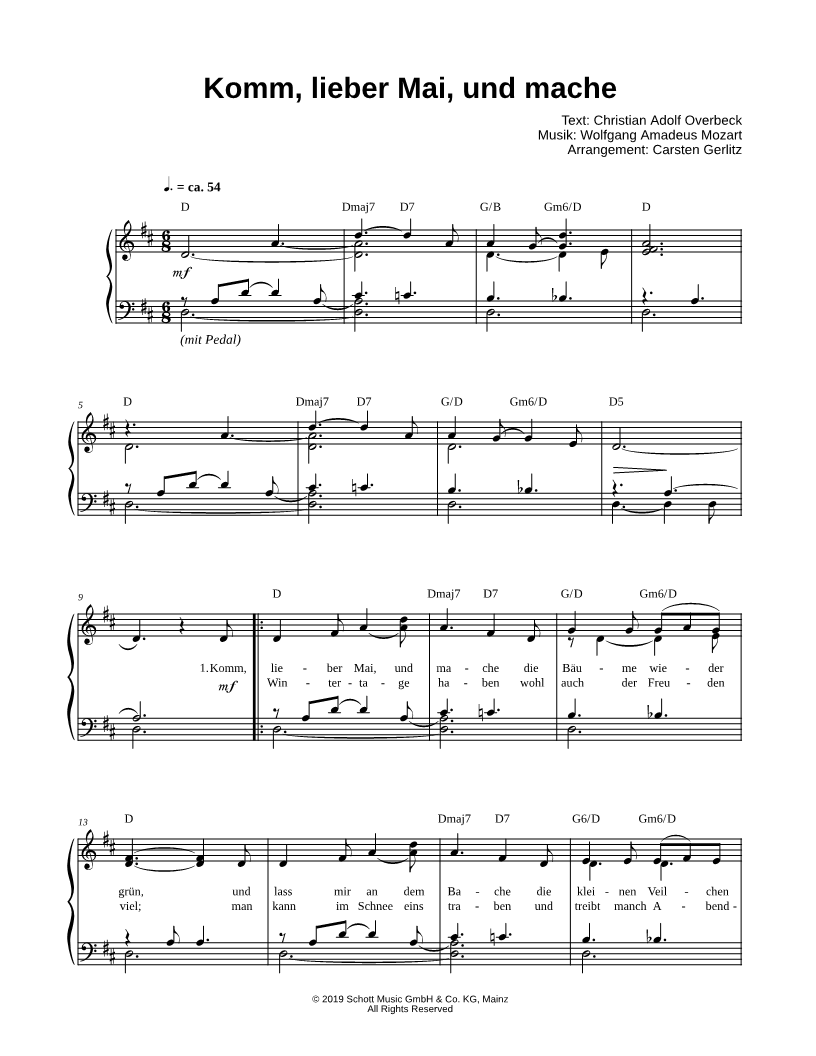 Komm, lieber Mai, und mache die Bäume wieder grün, und lass mir an dem Bache die kleinen Veilchen blüh'n! |