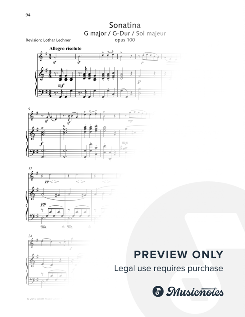 Sonatina in G Major, Op. 100 - Violin & Piano |