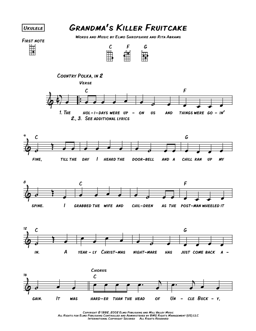 Ukulele/Vocal/Chords Leadsheet |