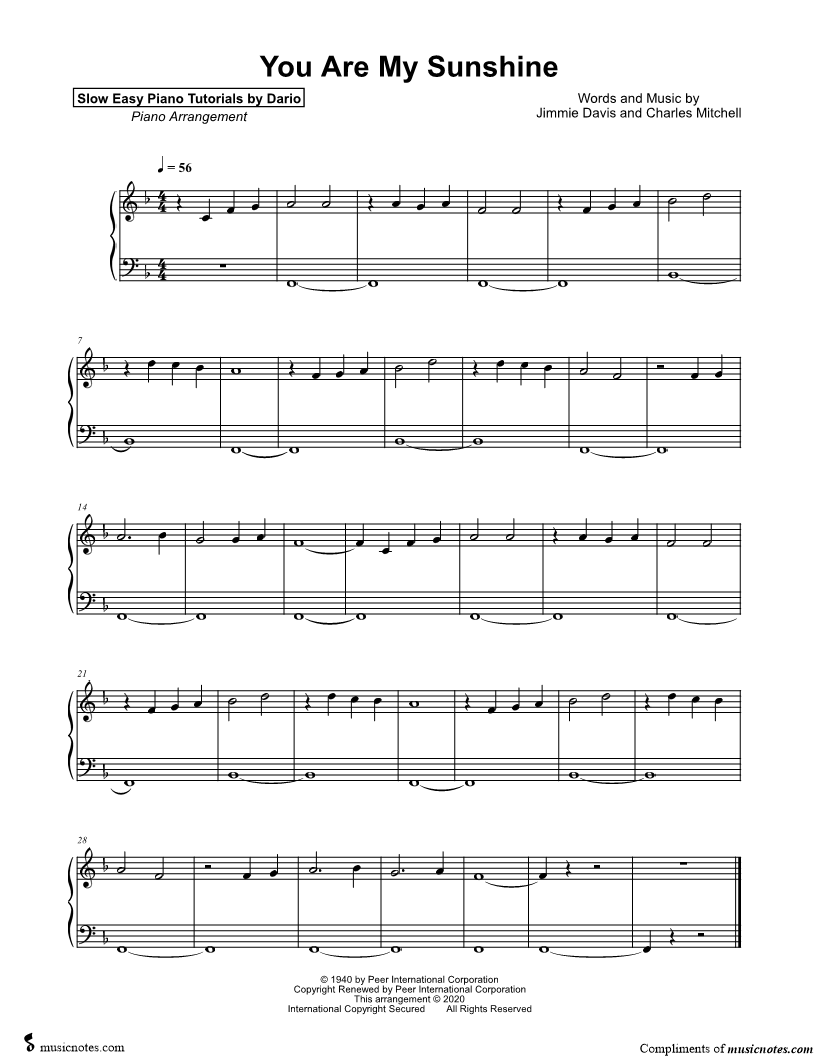 You Are My Sunshine [Slow Easy Piano Tutorial] |
