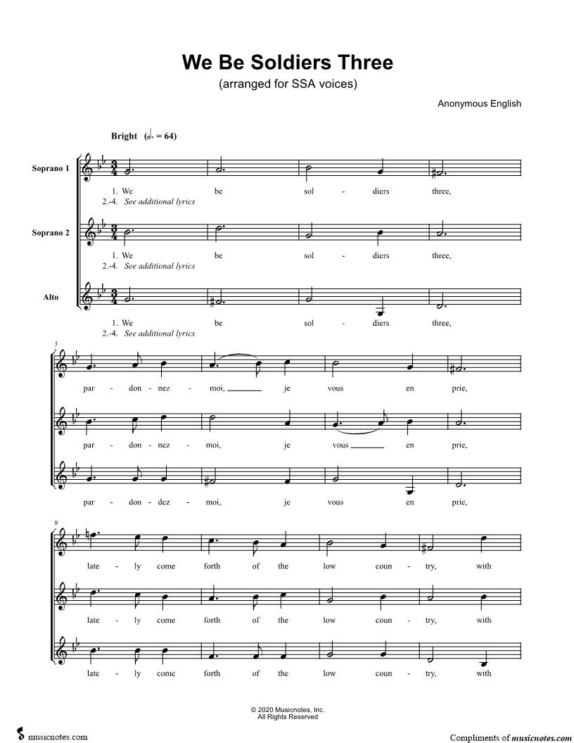 We be soldiers three, pardonnezmoi je vous en prie, |