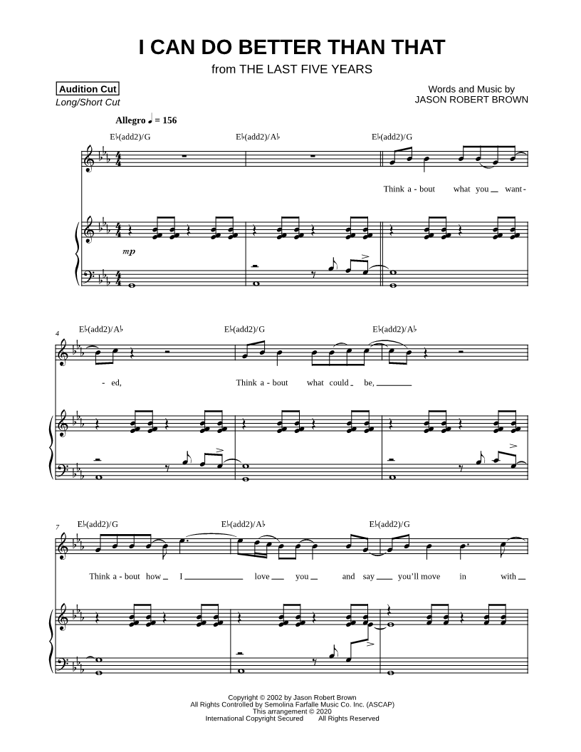 Piano/Vocal/Chords Singer Pro Audition Cut - Short |