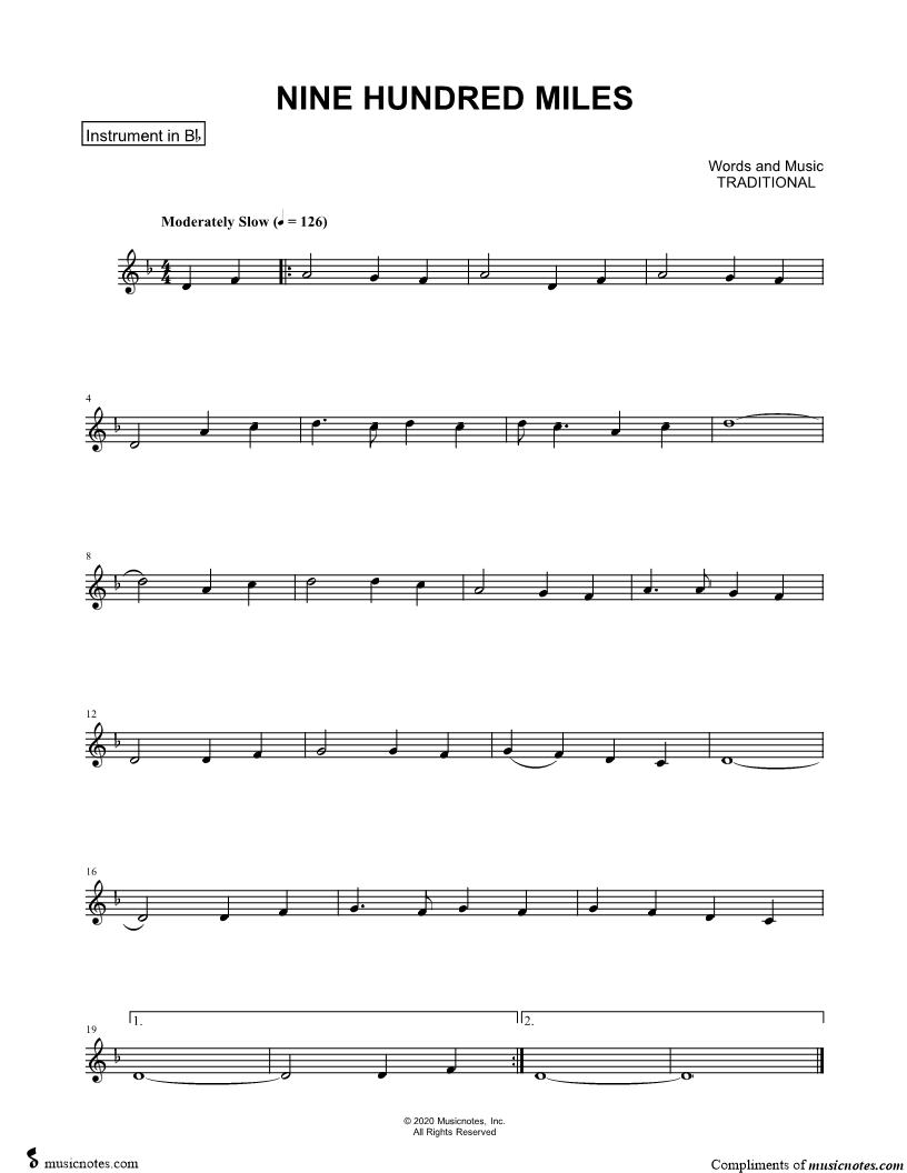 Nine Hundred Miles - Bb Instrument |