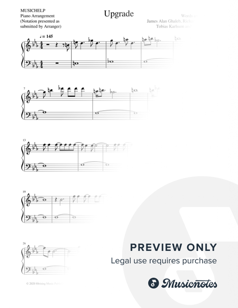 Many of the arrangements on Musicnotes have transpositions available, typically in C Major, as well as 3 sharps and 3 flats. If you do not see your desired key, you can request a transposition by reaching out to Customer Support.